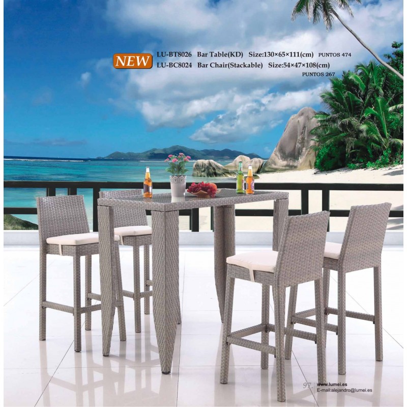 Mesa alta de rattan, ideal para cualquier zona exterior interior, combinable.Recipiente :