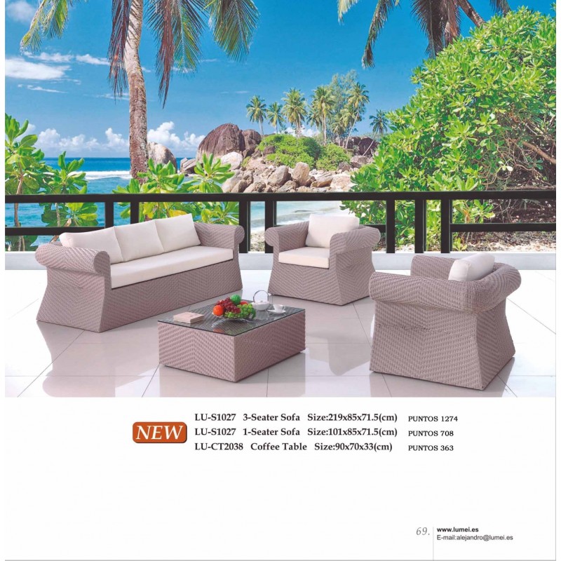 Sofá de 3 plazas ideal para exterior, combinable, de alta calidad en rattan sintético.Recipiente :