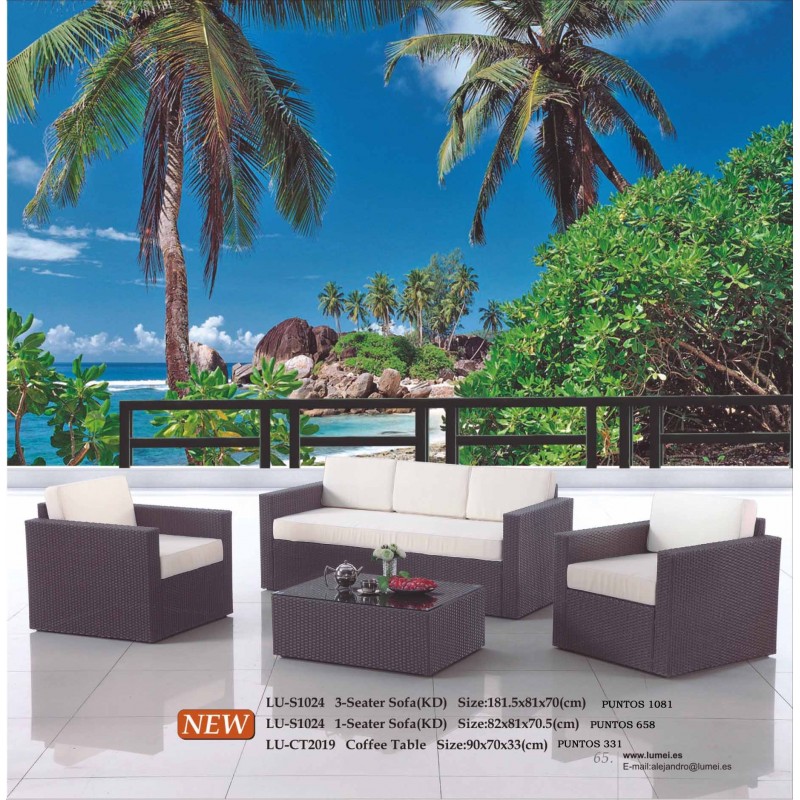 Sofá de 3 plazas ideal para exterior, combinable, de alta calidad en rattan sintético.Recipiente :