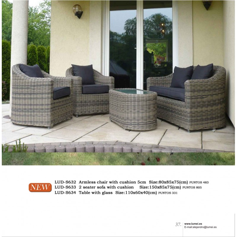 Sofá individual, perfecto para complementar con mas piezas, ideal para interior o exterior, alta calidad, rattan sintético.Recipiente :