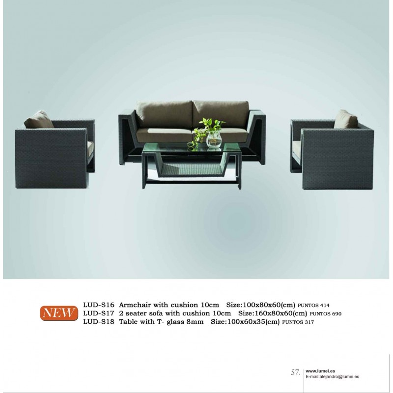 Sofá individual, perfecto para complementar con mas piezas, ideal para interior o exterior, alta calidad, rattan sintético.Recipiente :